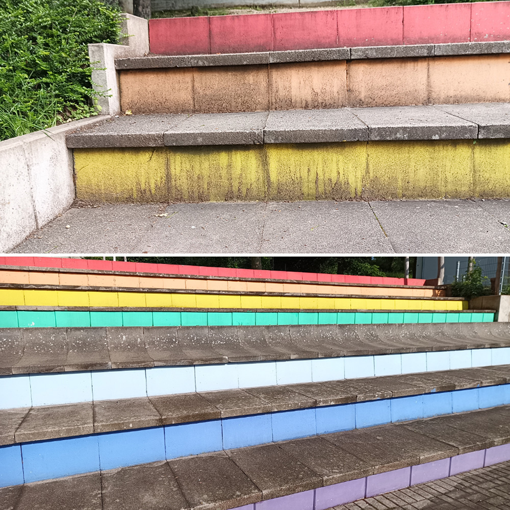 Am 25.05.24 fand wieder eine unserer regelmäßigen Schulhofreinigungen statt, bei der zahlreiche Eltern und Kinder tatkräftig mithalfen. Auch Frau Kollatz-Block war wieder, dieses Mal mit ihrem Mann als Verstärkung, mit an Bord. Gemeinsam sorgten wir erneut für strahlende Wände, aber die Freude am gemeinsamen Arbeiten stand natürlich im Vordergrund .