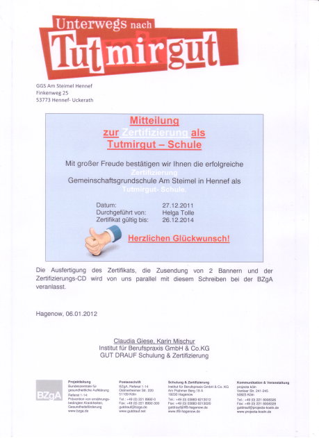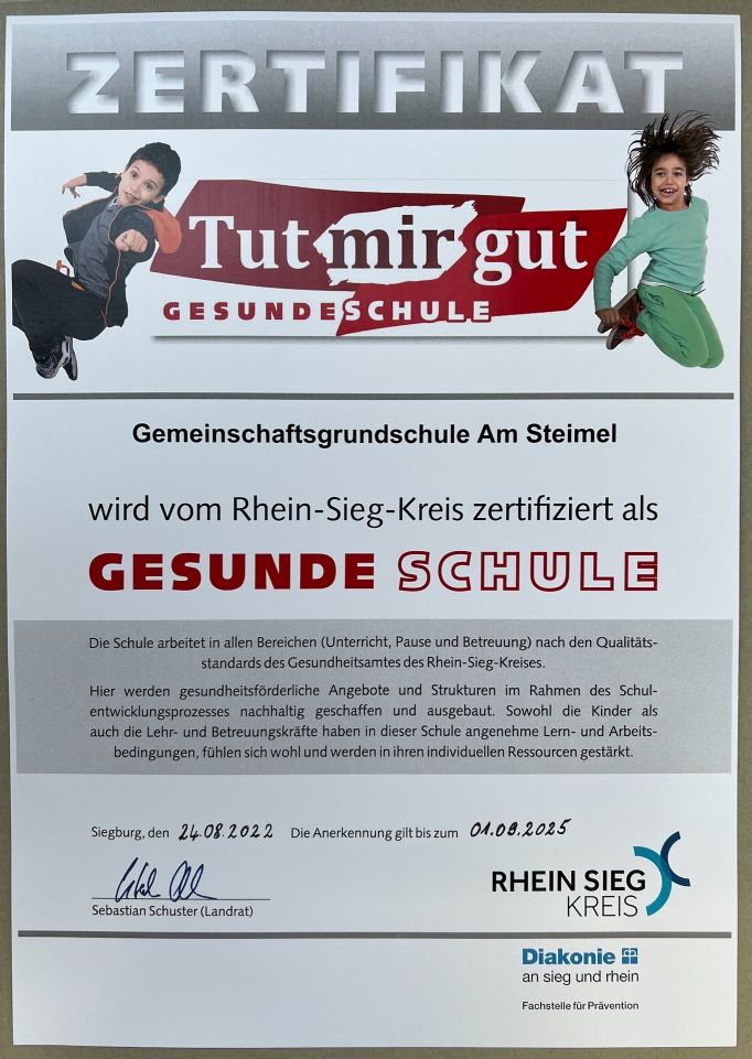 Auch in diesem Jahr erhielt die GGS Am Steimel erneut das Tut-mir-gut Zertifikat! ...